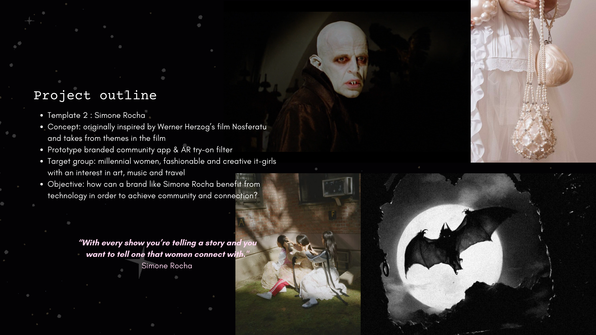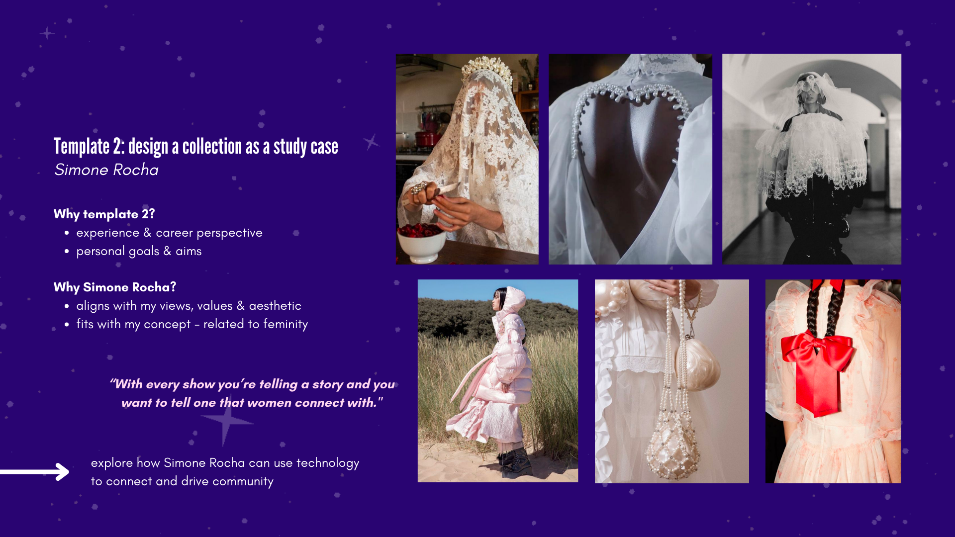 For this project, I chose to design a collection for the brand Simone Rocha.