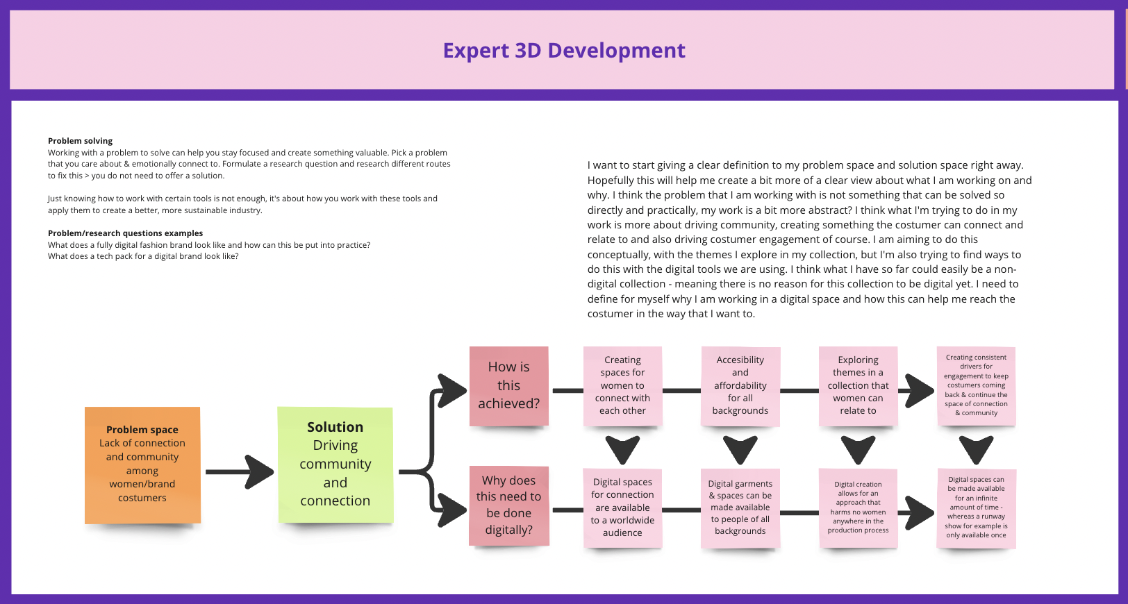 In my third year of my studies at AMFI, I took the specialisation 3D Hypercraft. In 3D Hypercraft, the student gets the opportunity to explore 3D programs and learns to use technology in order to express their vision, while focusing on construction in relation to form, detailing and application. The student is challenged to develop their conceptual thinking and immersive storytelling skills, and submerge themselves in the process of creating a collection from start to finish.